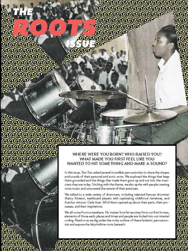 In this Roots themed issue of Tom Tom we explore drummer's roots and Roots music. We asked some of our favorite drummers to tell us where they got their starts and how they have grown. El-P interviewed Carla Azar of Autolux, we talked to The Voices' drummer Gisella Giurfa, Ty Braxton's percussionist Yuri Yamashita and included a Drummer's guide to Philly. Enjoy!