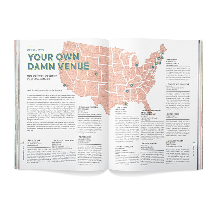 Tom Tom’s Summer Issue is all things DIY. It features discussions with the Internet’s Syd Tha Kyd (on our cover) on homespun production and being an all around badass. We also talk to the Coathanger’s Stephanie Luke, about having fun while being taken seriously, and with Madison McFerrin on creativity in the studio. We delve into starting a podcast, running your own merch shop, DIY venues across the US, a pedal-maker’s journey, Working Women: a DJ collective, and one drummer’s path to finding her singing voice. We highlighted some incredibly exciting new artists like L’Rain, Tikyra Jackson, Mod Con, The Shakes, Sarah The !llstrumentalist, Linda-Philomène Tsoungui, and Melenas. Get into it. PRINT SOLD OUT! Digital copies only.